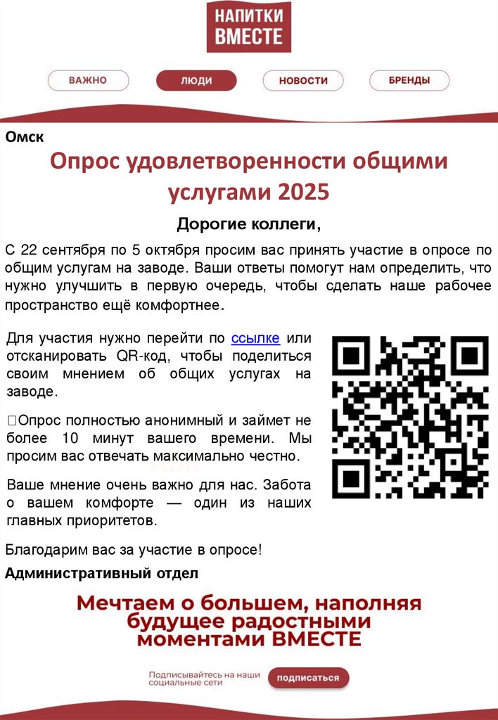 общим услугам на заводе. Ваши ответы помогут нам определить, что