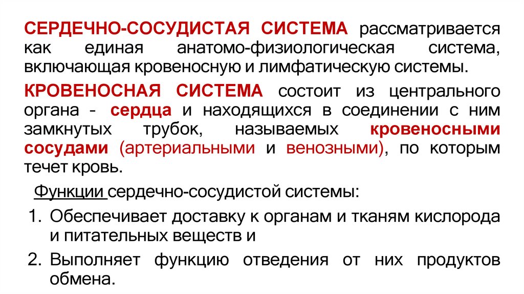 СЕРДЕЧНО-СОСУДИСТАЯ СИСТЕМА рассматриваетсякак