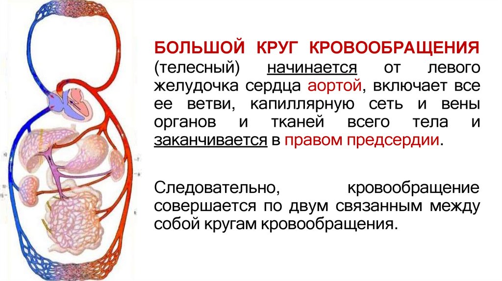 артерии и аорты оба желудочка сердца нагнетают кровь в большой круг
