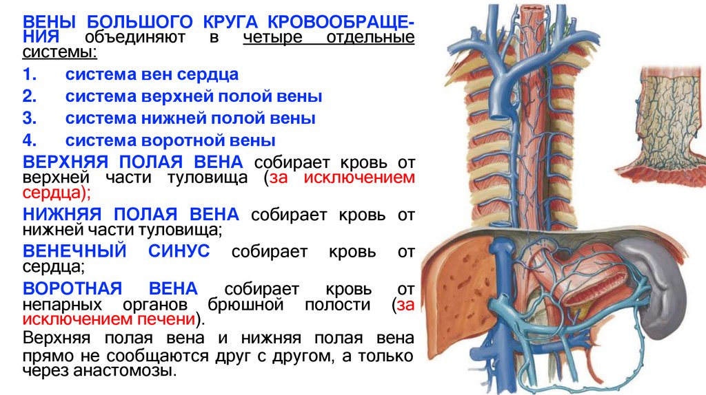 соединяется с нижней полой веной. В результате в нижней полой вене