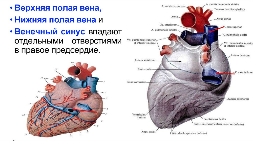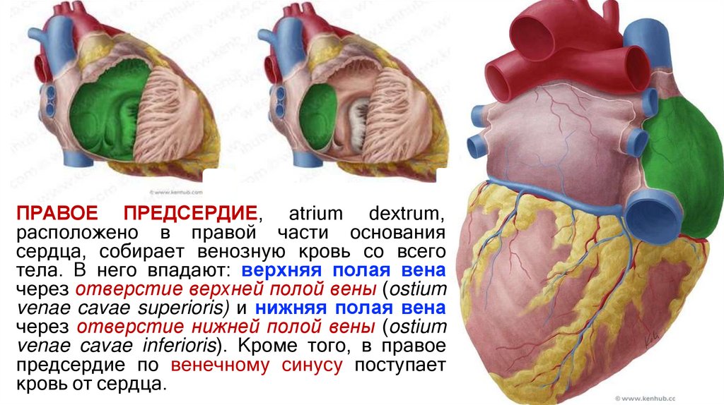 попадает в правое предсердие. Между предсердиями имеется овальное окно,