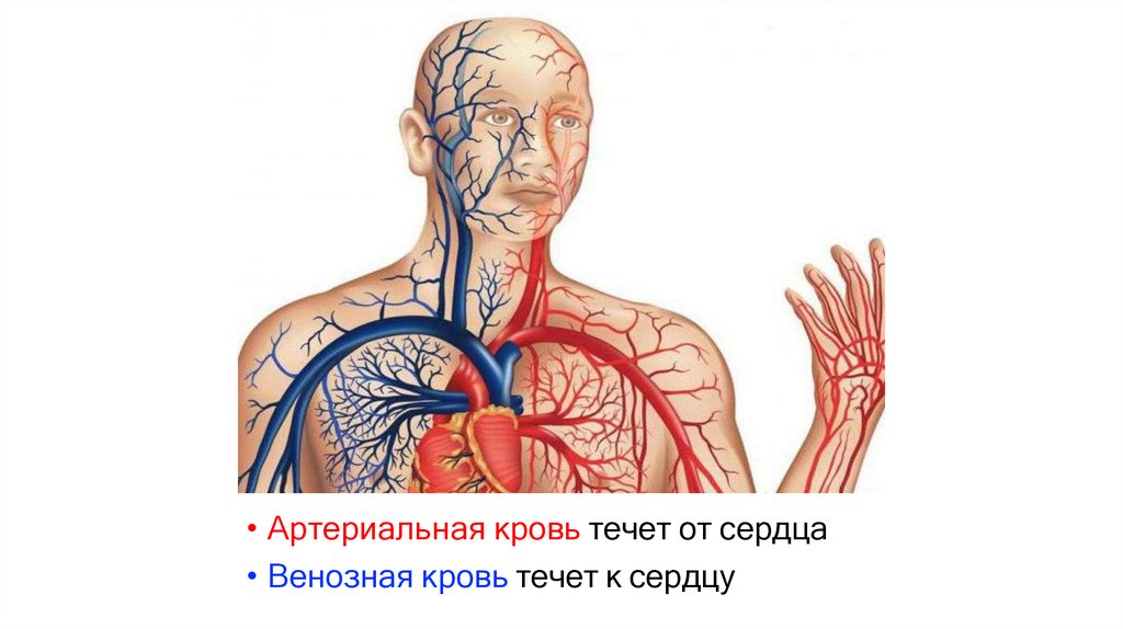 • Артериальная кровь течет от сердца• Венозная кровь течет к сердцу