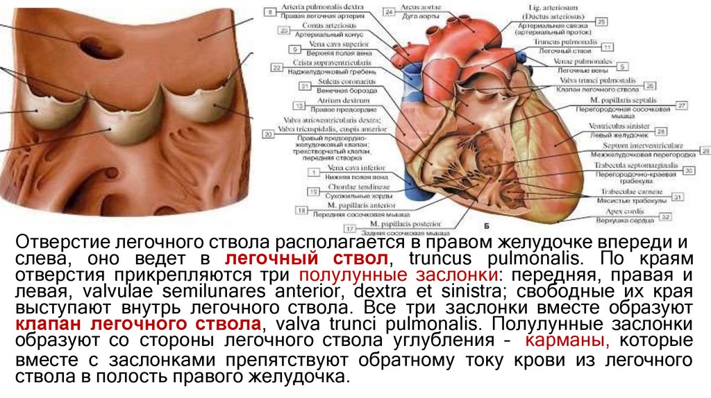 выталкивается в легочную артерию; меньшая часть крови течет в легкие, а
