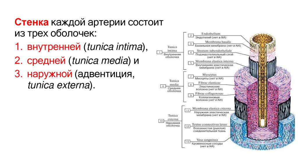 • Наружная оболочка (адвентиция), tunica externa, образована