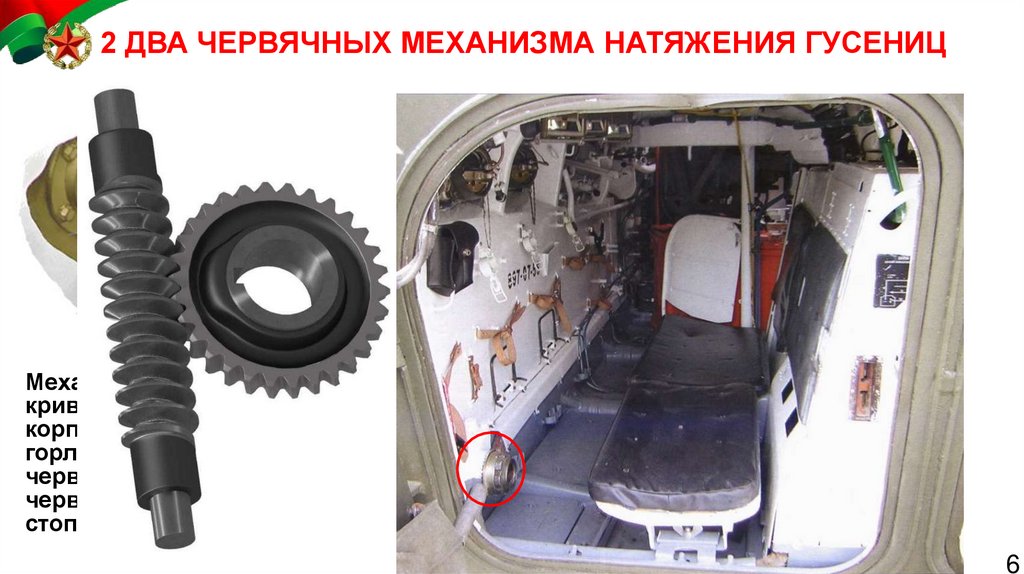 2 ДВА ЧЕРВЯЧНЫХ МЕХАНИЗМА НАТЯЖЕНИЯ ГУСЕНИЦМеханизм натяжения состоит: