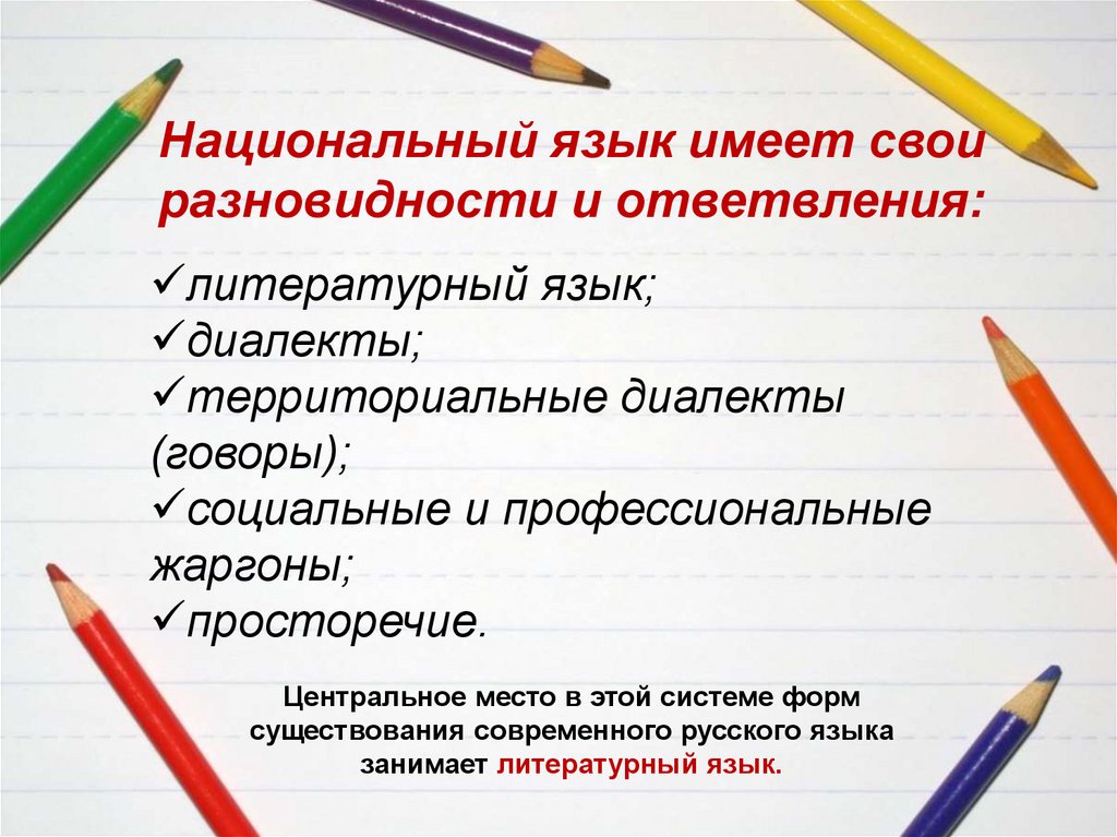 • Русский национальный язык состоит изнескольких разновидностей, т.к. не все