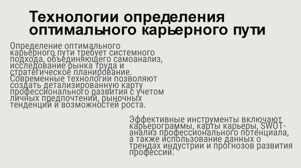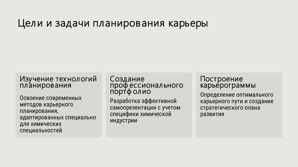 Цел и и задачи планиров ания карьерыИзучение тех нол огий