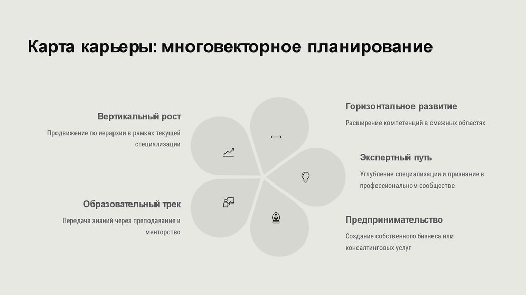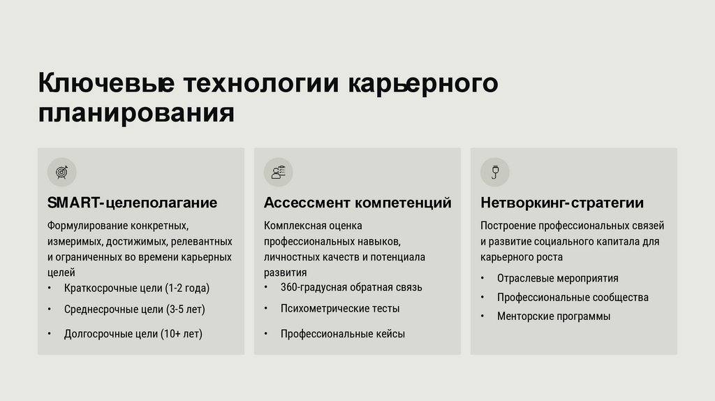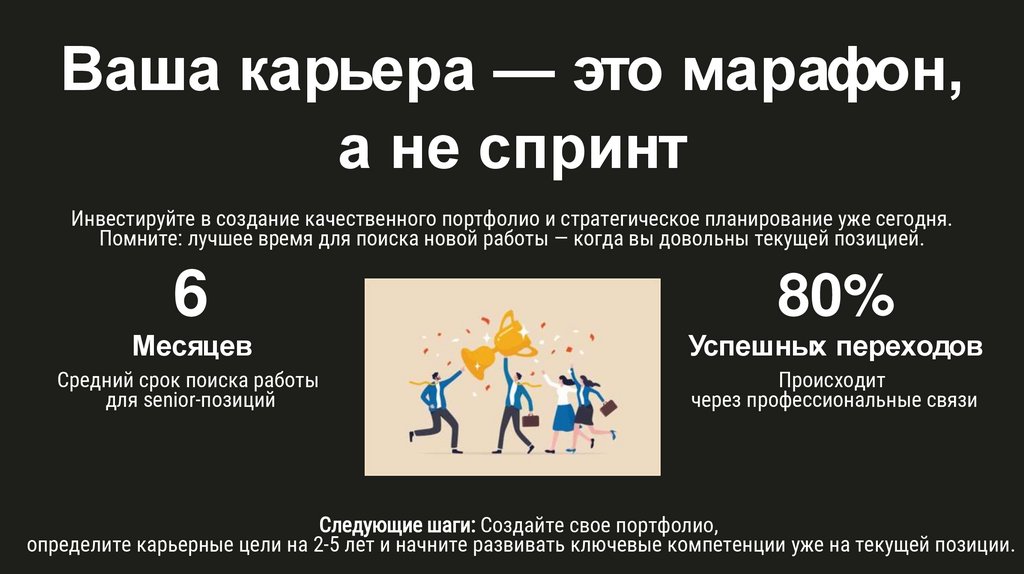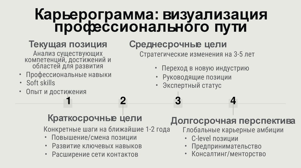определите карьерные цели на 2-5 лет и начните развивать ключевые компетенции уже на текущей позиции.