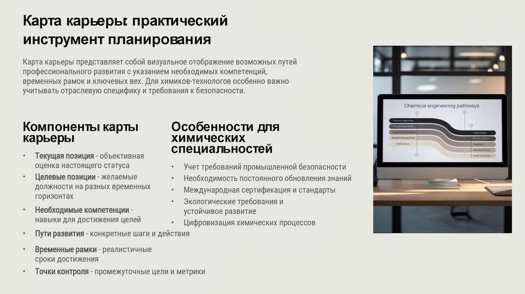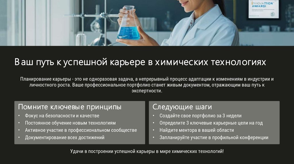 В аш путь к успешной карьере в х имических тех нологияхПланирование карьеры - это не одноразовая задача, а непрерывный процесс адаптации к изменениям в индустрии и