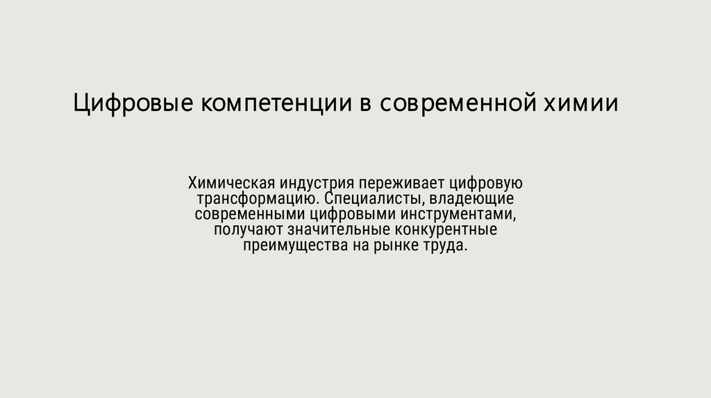 Цифровые компетенции в современной химииХимическая индустрия переживает цифровую