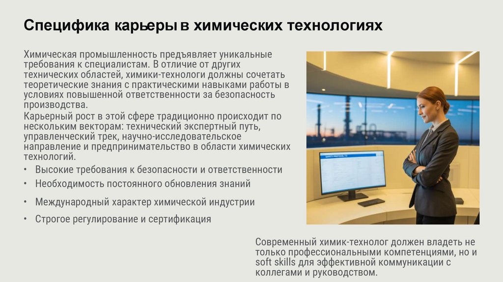 Специфика карьеры в химических технологияхХимическая промышленность предъявляет уникальные