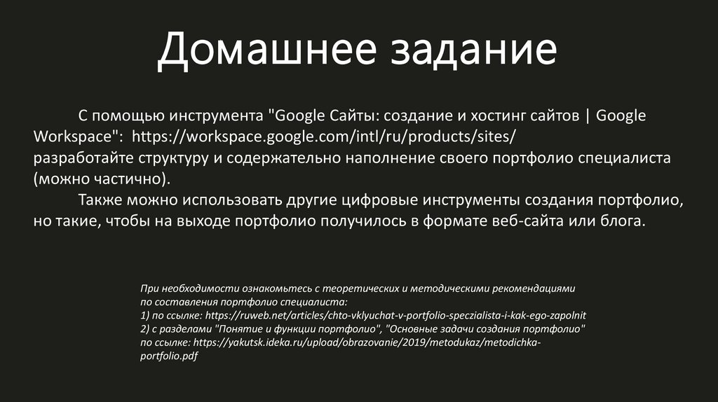 Домашнее заданиеС помощью инструмента "Google Сайты: создание и хостинг сайтов | Google