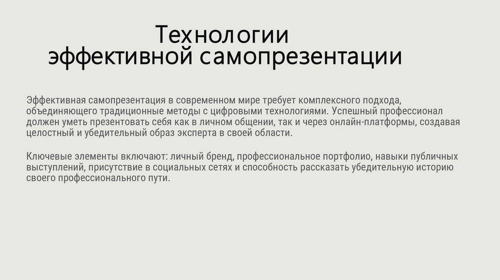 Эффективная самопрезентация в современном мире требует комплексного подхода,