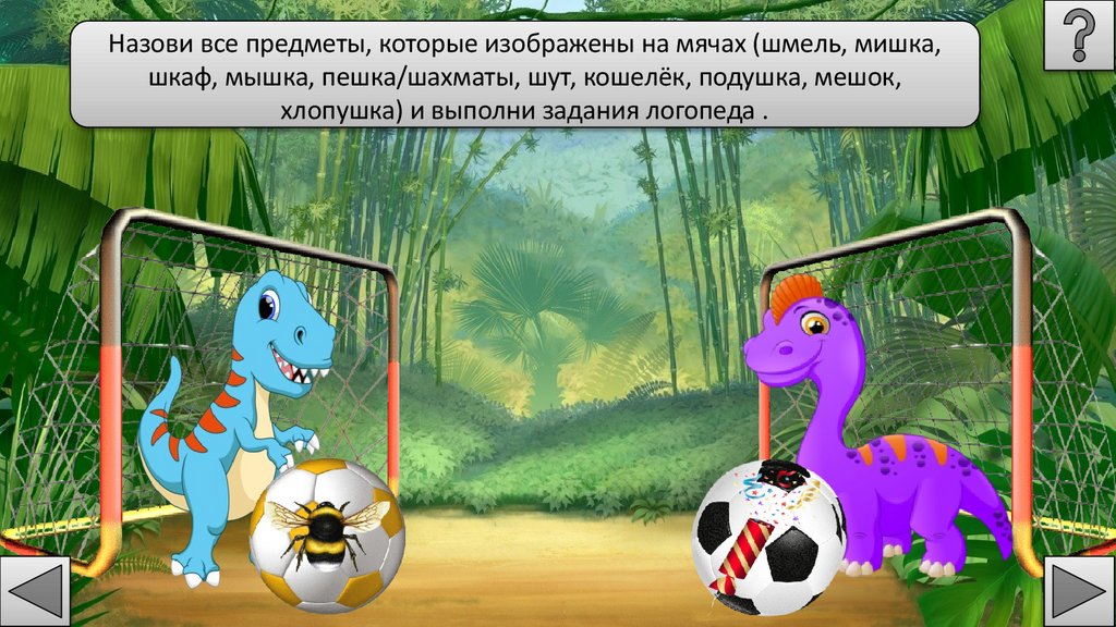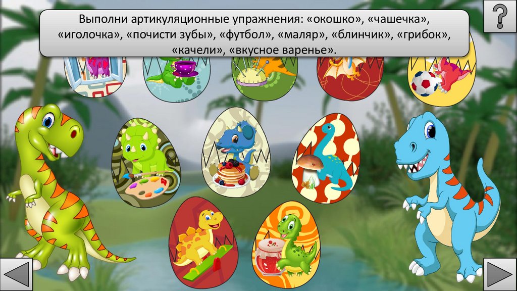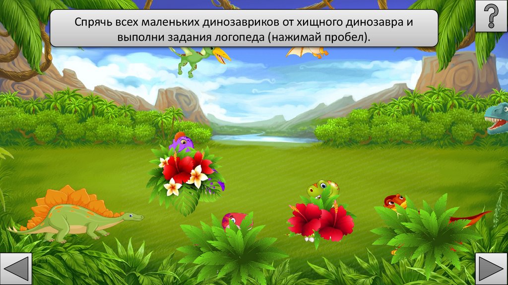 Спрячь всех маленьких динозавриков от хищного динозавра ивыполни задания логопеда (нажимай пробел).