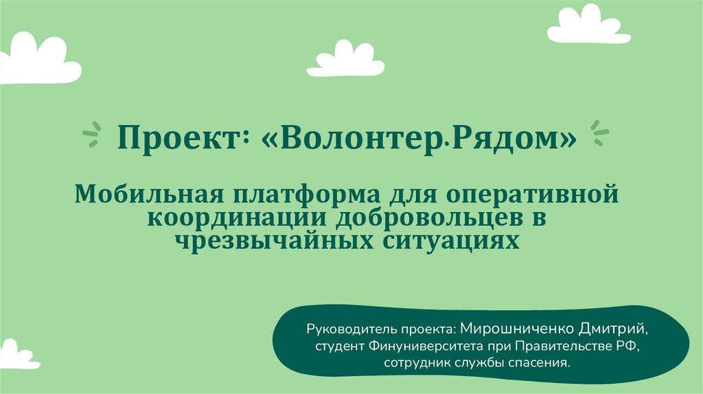 1. Проект: «Волонтер.Рядом» Мобильная платформа для оперативной координации добровольцев в чрезвычайных ситуациях