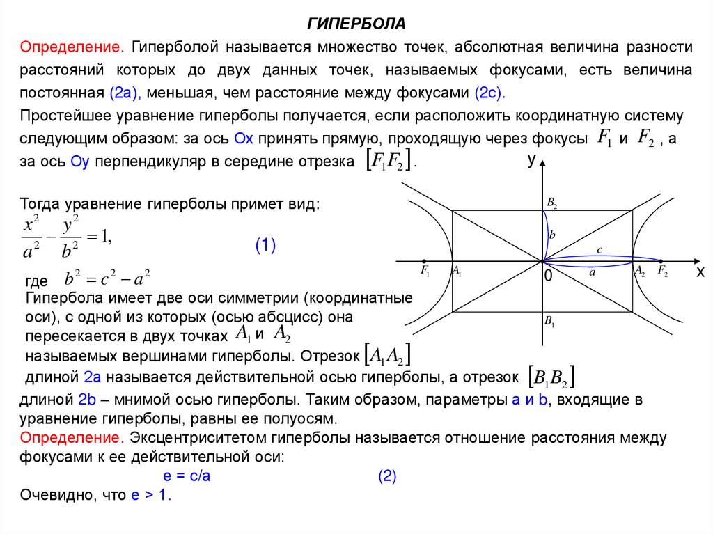 длиной 2а называется действительной осью гиперболы, а отрезок B1 B2
