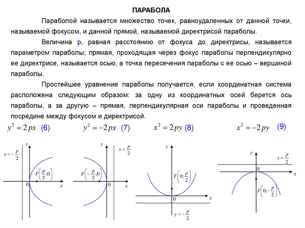 ее директрисе, называется осью, а точка пересечения параболы с ее осью – вершиной