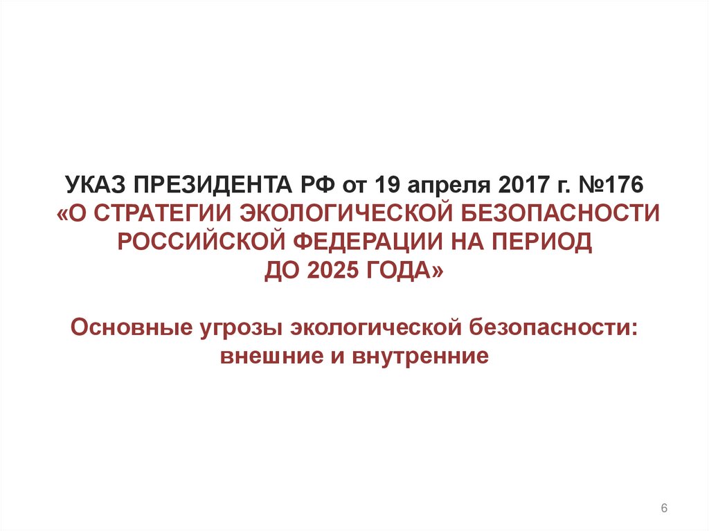 УКАЗ ПРЕЗИДЕНТА РФ от 19 апреля 2017 г. №176«О СТРАТЕГИИ ЭКОЛОГИЧЕСКОЙ БЕЗОПАСНОСТИ