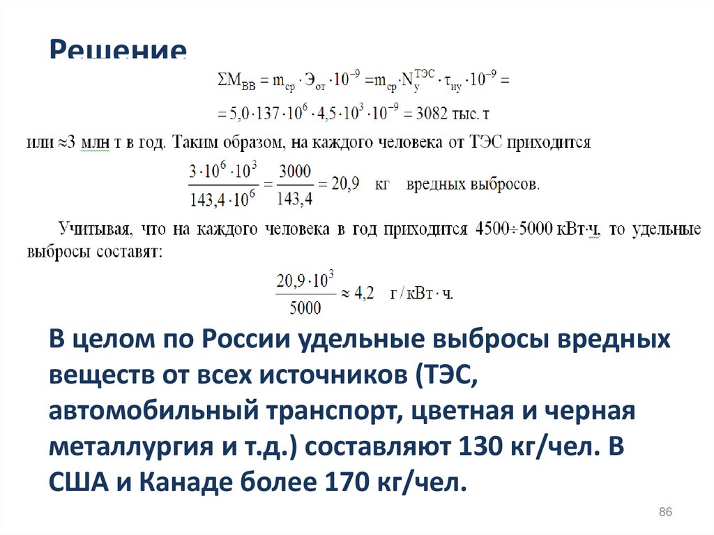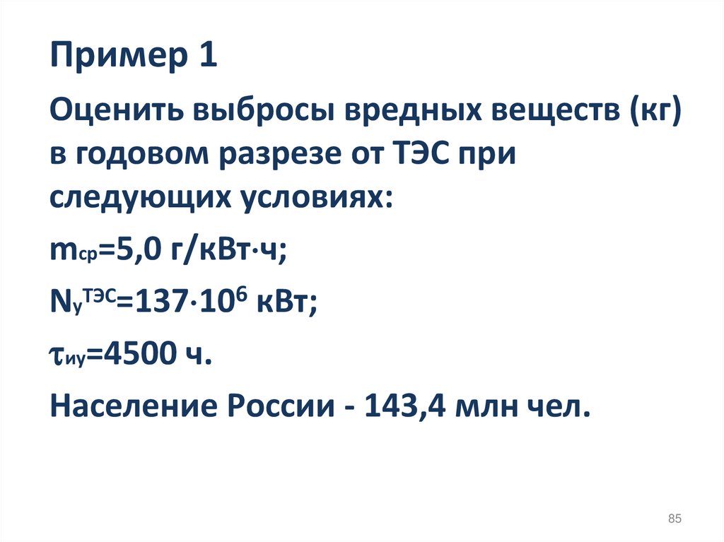 84. Удельные выбросы вредных веществ при сжигании органических топлив, m, г/кВтч
