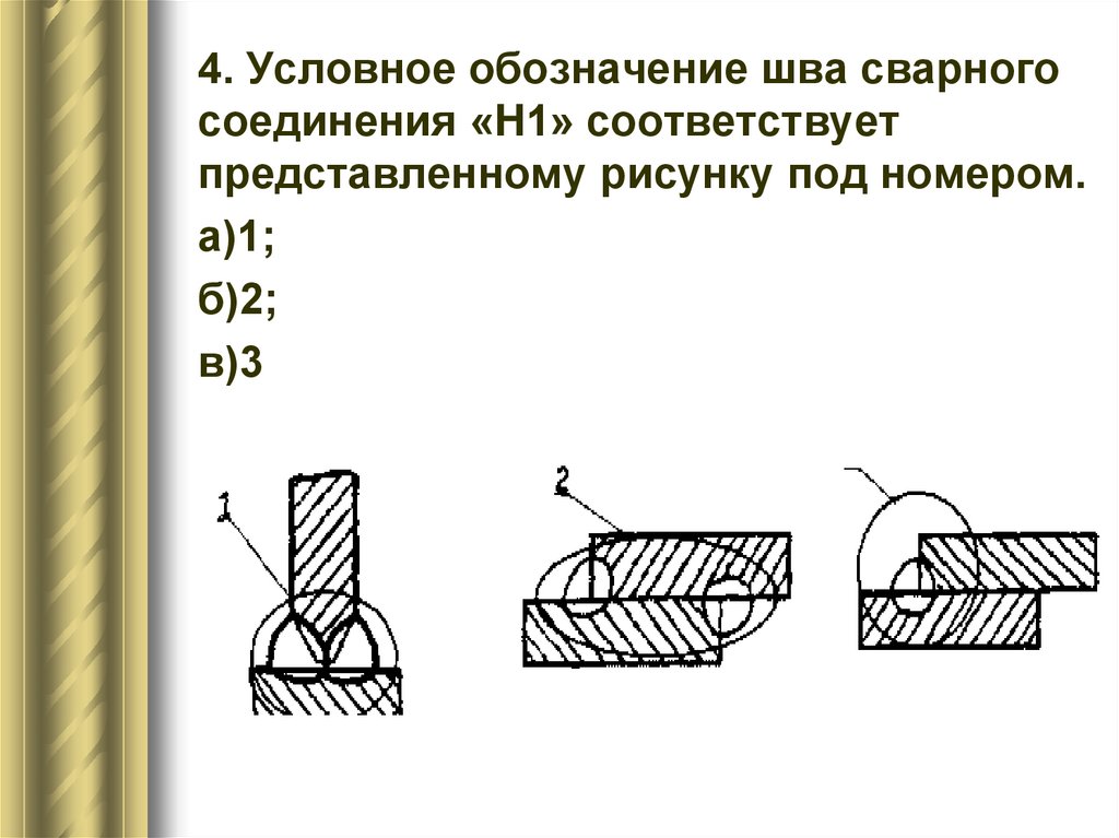4. Условное обозначение шва сварногосоединения «H1» соответствует
