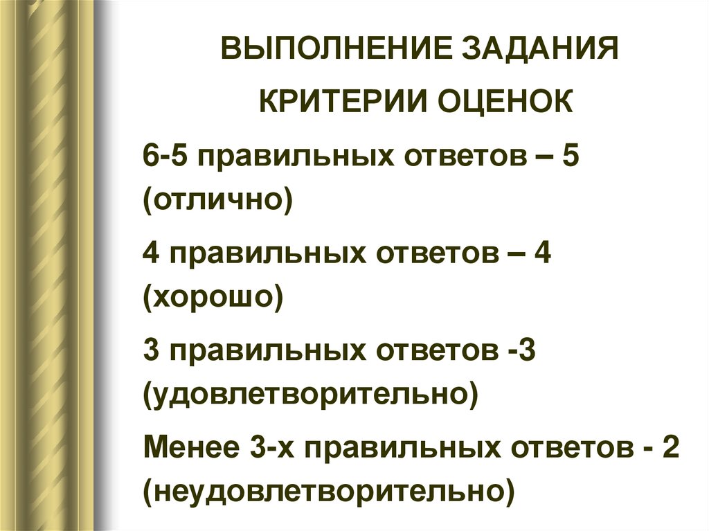 ВЫПОЛНЕНИЕ ЗАДАНИЯКРИТЕРИИ ОЦЕНОК
