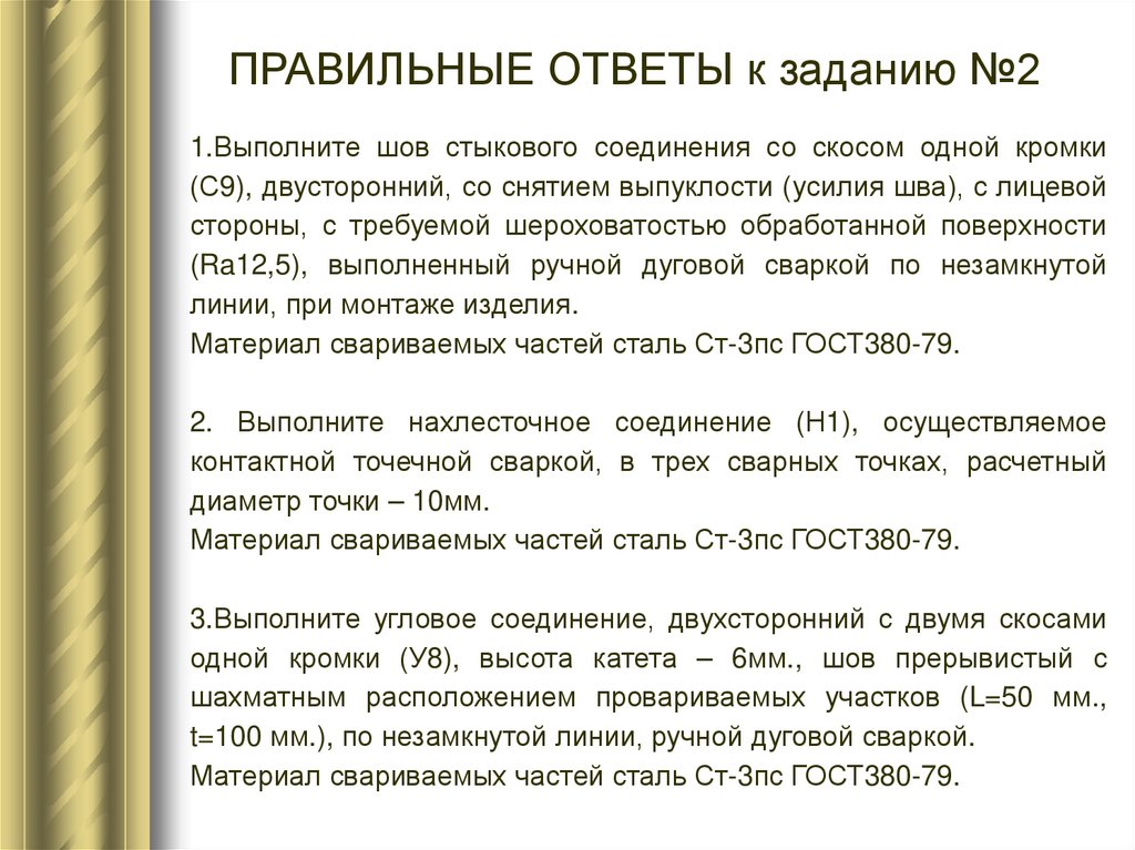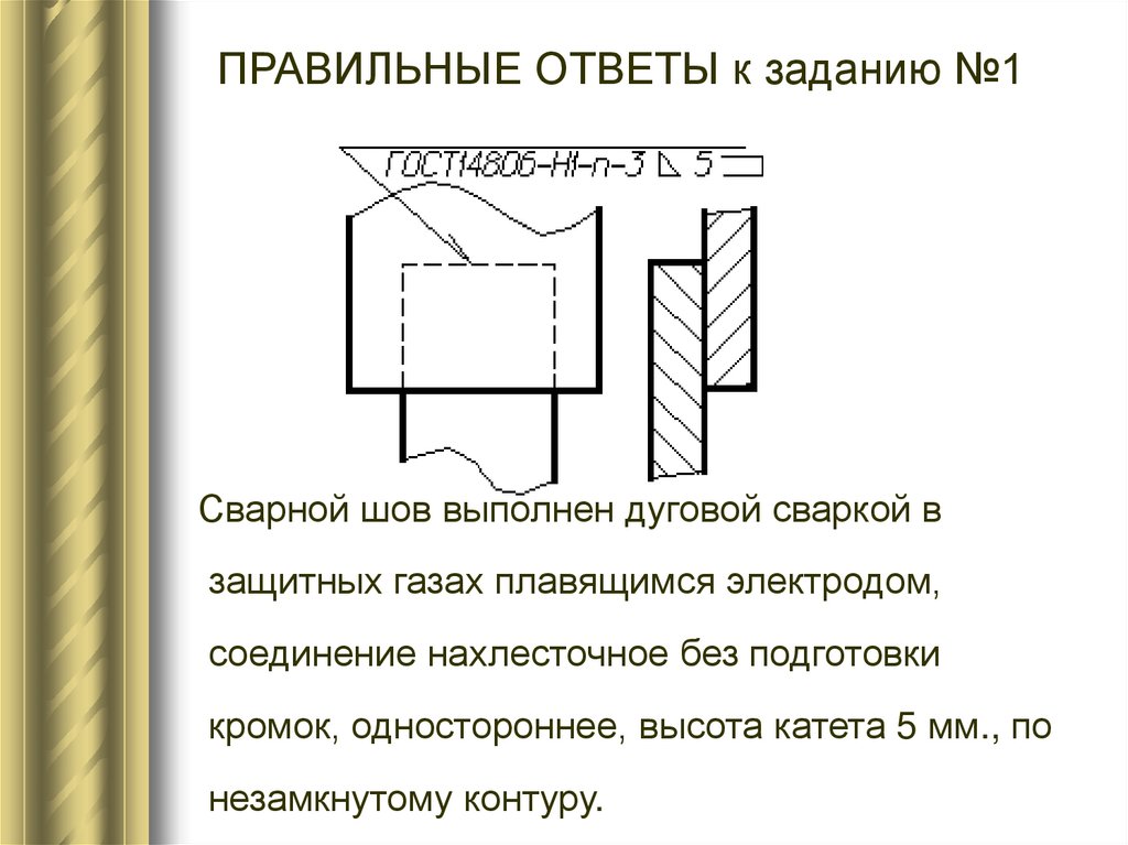 ПРАВИЛЬНЫЕ ОТВЕТЫ к заданию №1Сварной шов выполнен дуговой сваркой в