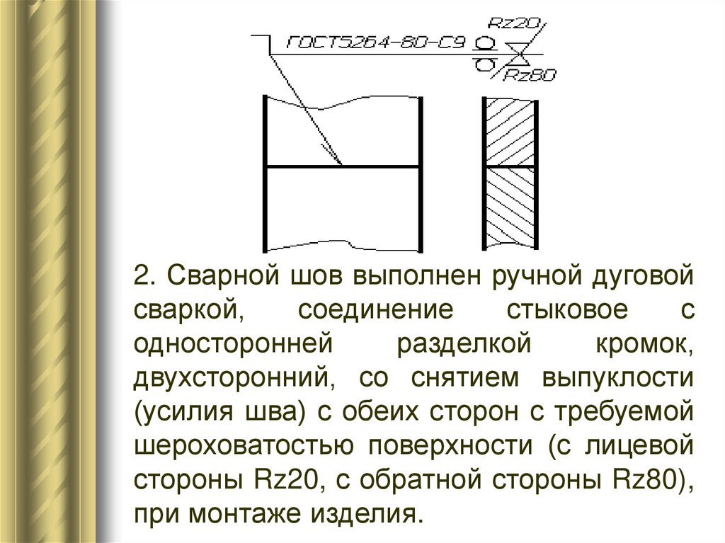 2. Сварной шов выполнен ручной дуговойсваркой,
