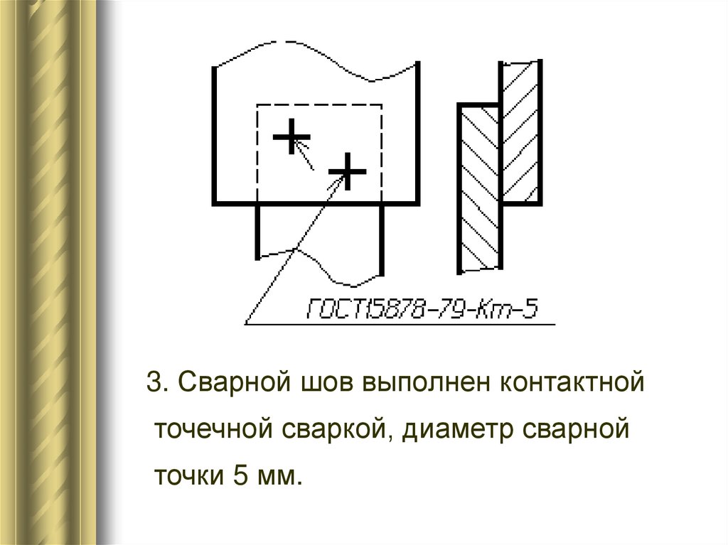 3. Сварной шов выполнен контактнойточечной сваркой, диаметр сварной