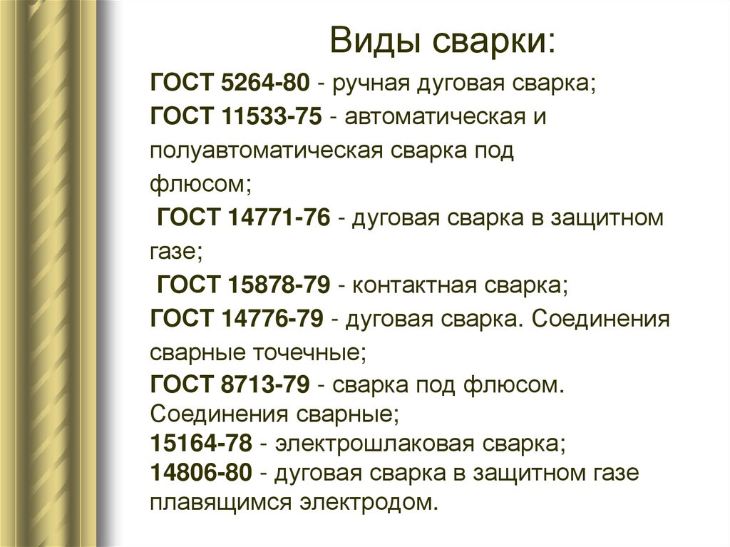 Виды сварки:ГОСТ 5264-80 - ручная дуговая сварка;