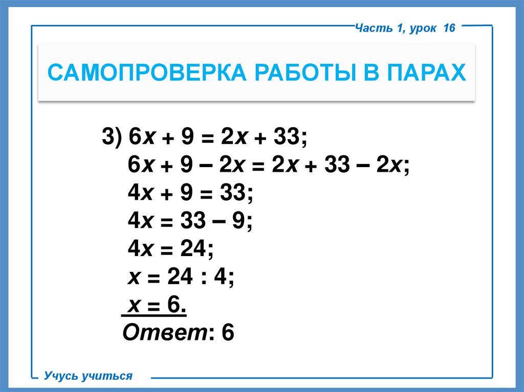 6x + 9 – 2х = 2x + 33 – 2х;