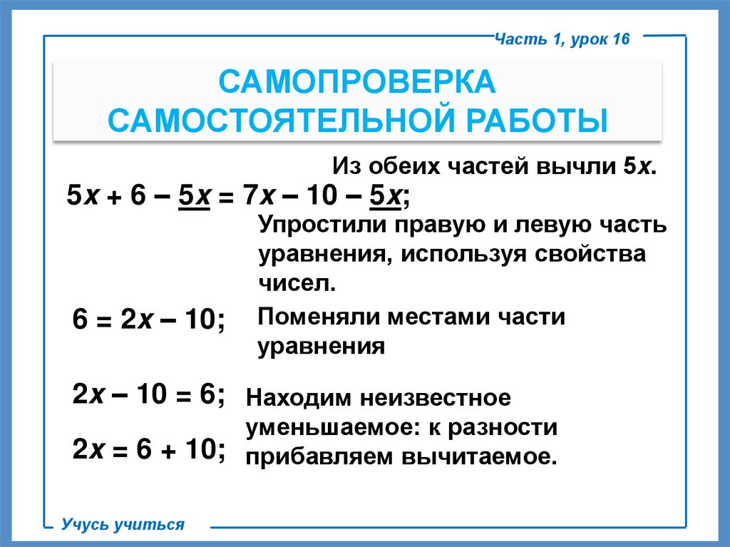 1) Вычесть из обеих частей