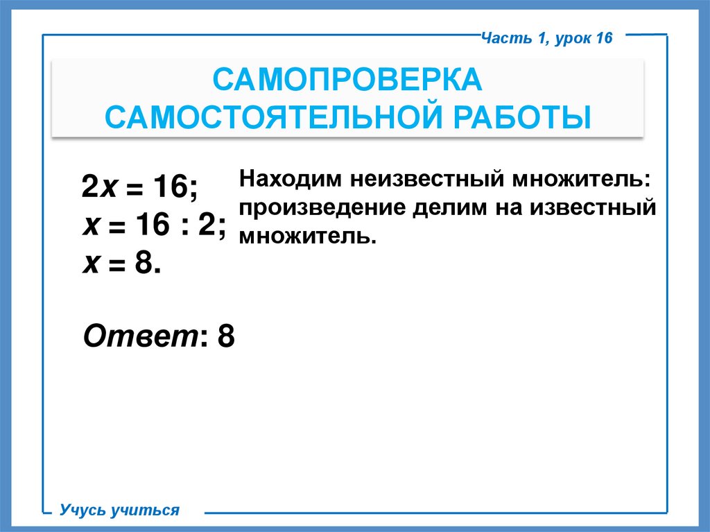 2x = 16; Находим неизвестный множитель: