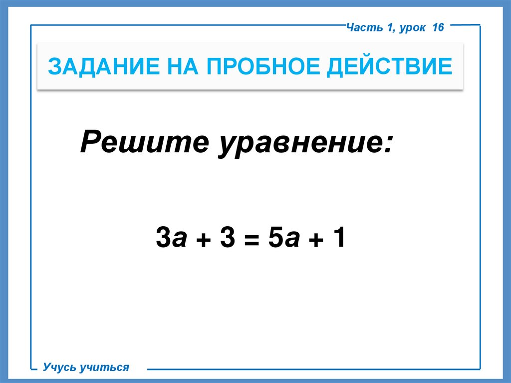 Часть 1, урок 16ЗАДАНИЕ НА ПРОБНОЕ ДЕЙСТВИЕ