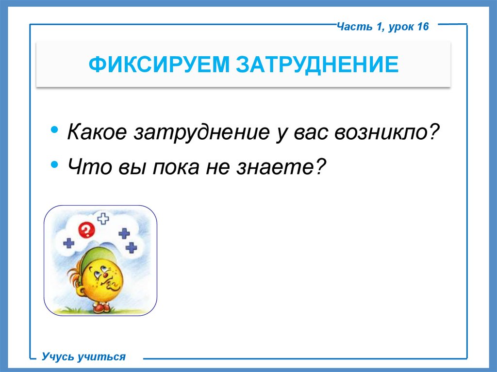 Часть 1, урок 16ФИКСИРУЕМ ЗАТРУДНЕНИЕ