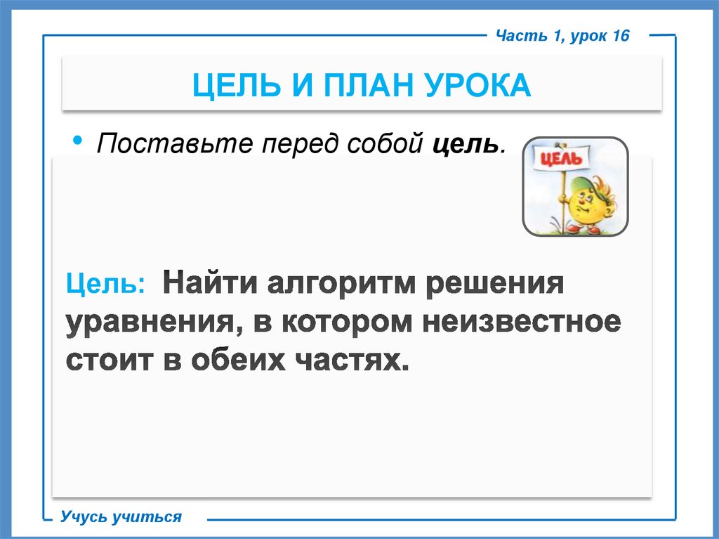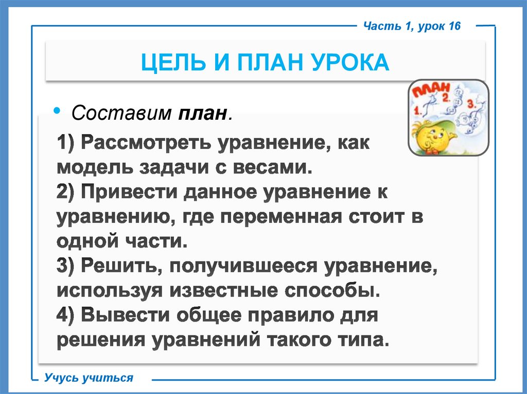 Часть 1, урок 16ЦЕЛЬ И ПЛАН УРОКА