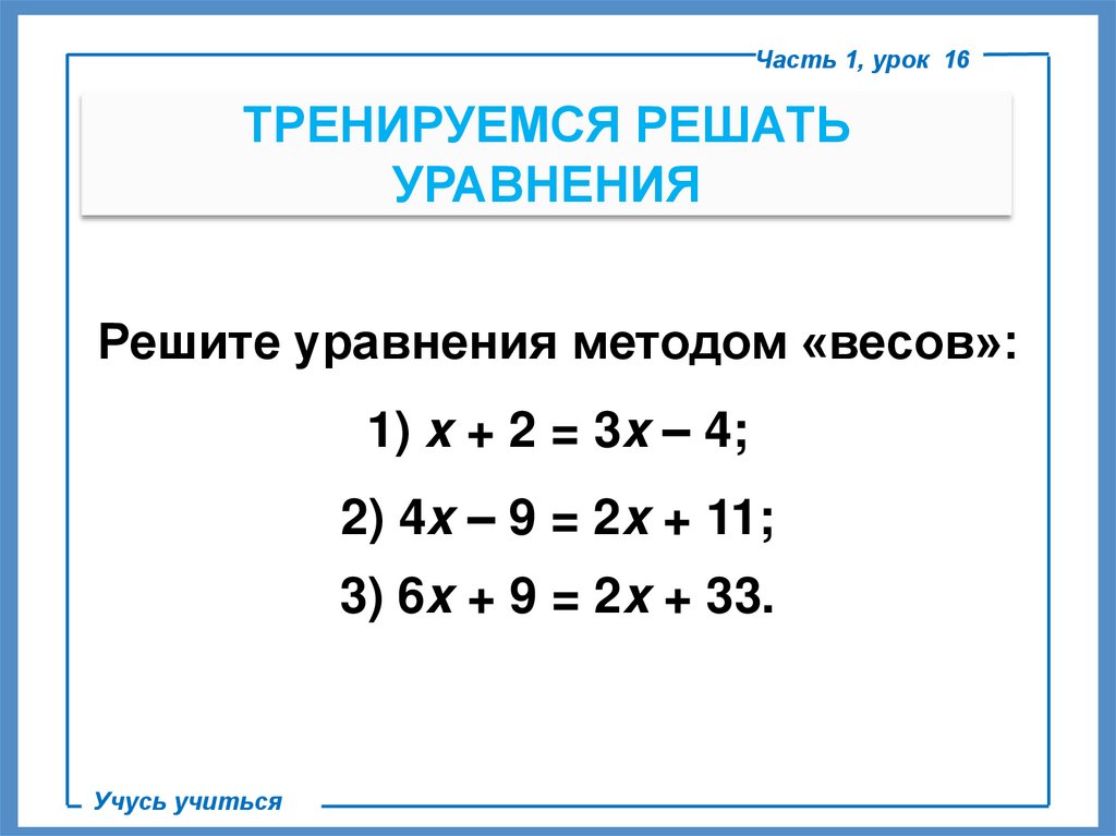 Часть 1, урок 16ТРЕНИРУЕМСЯ РЕШАТЬ