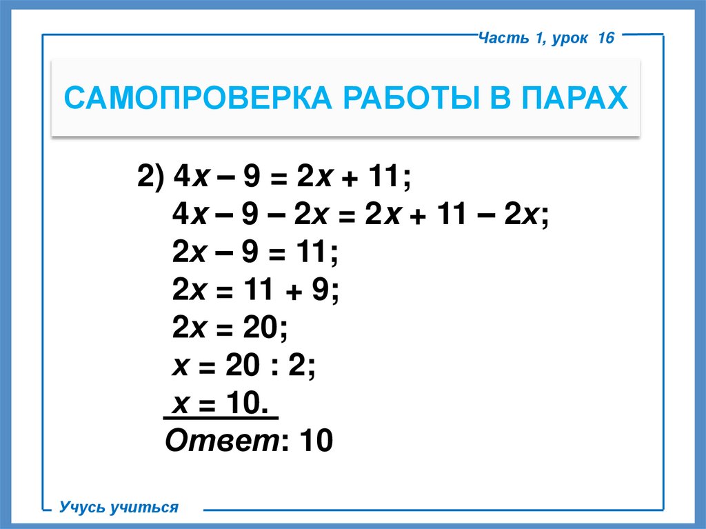 Часть 1, урок 16САМОПРОВЕРКА РАБОТЫ В ПАРАХ