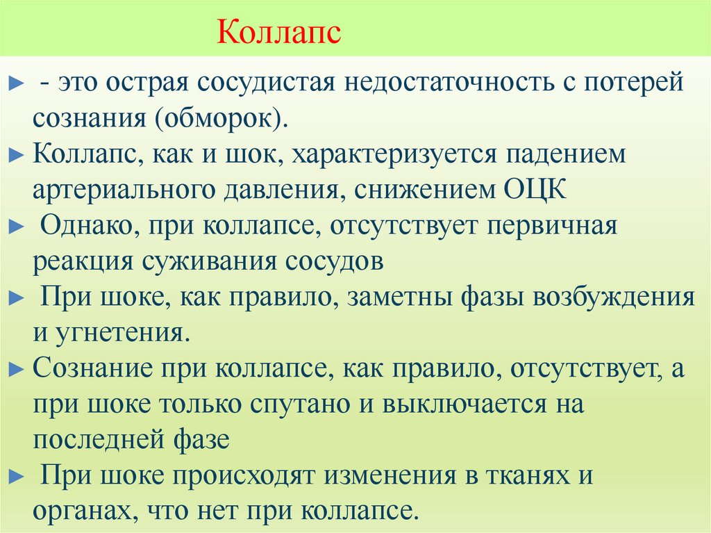 Коллапс► - это острая сосудистая недостаточность с потерей