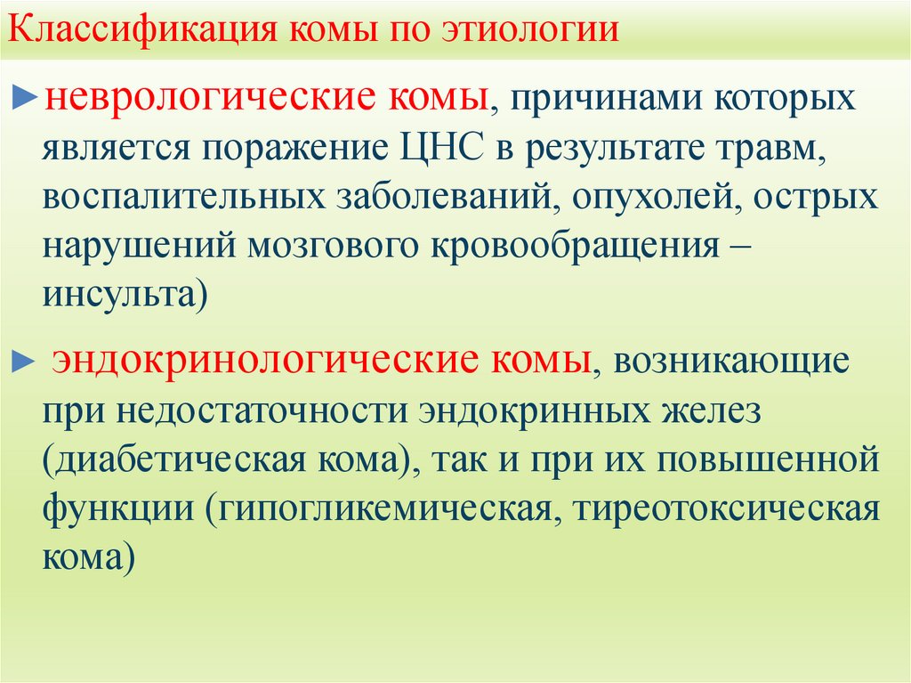 Классификация комы по этиологии►неврологические комы, причинами которых