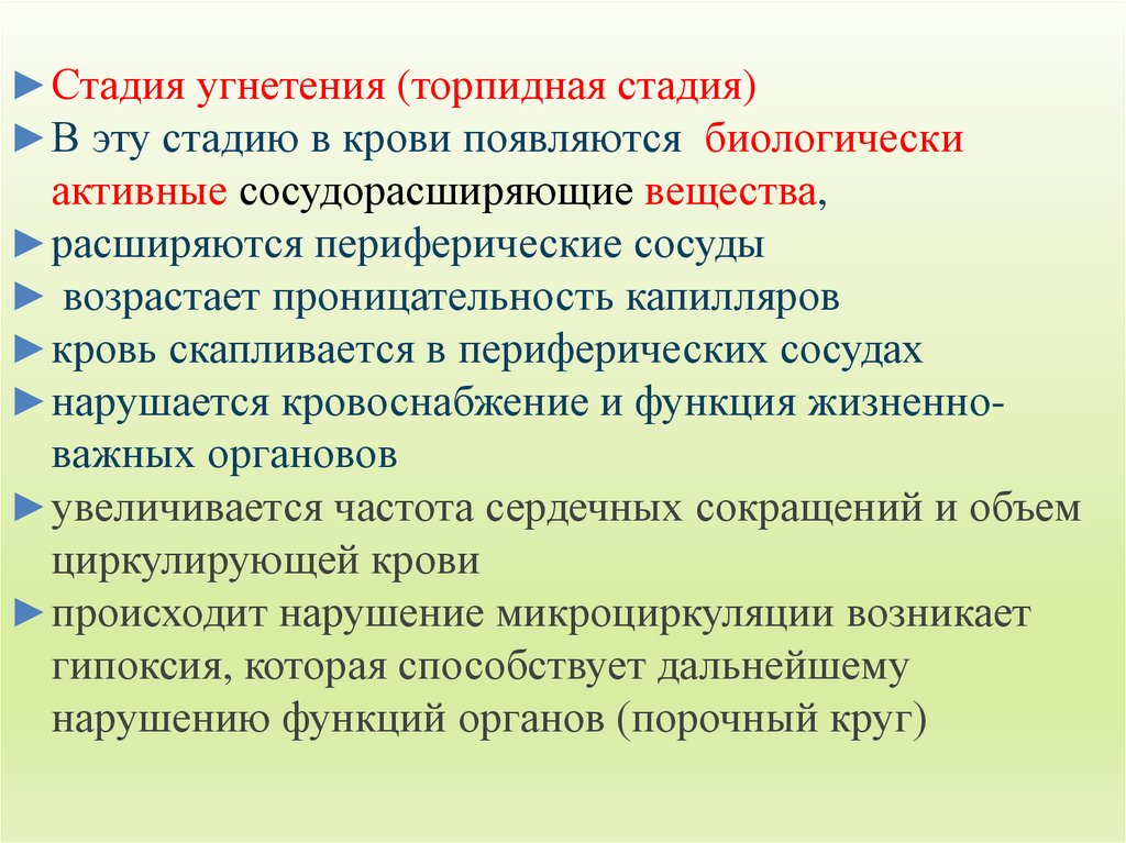 ► Стадия угнетения (торпидная стадия)► В эту стадию в крови появляются биологически