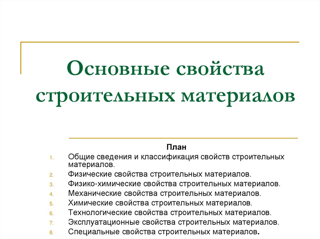 2. 1. Общие сведения и классификация свойств строительных материалов.