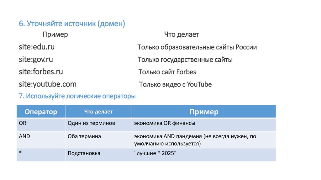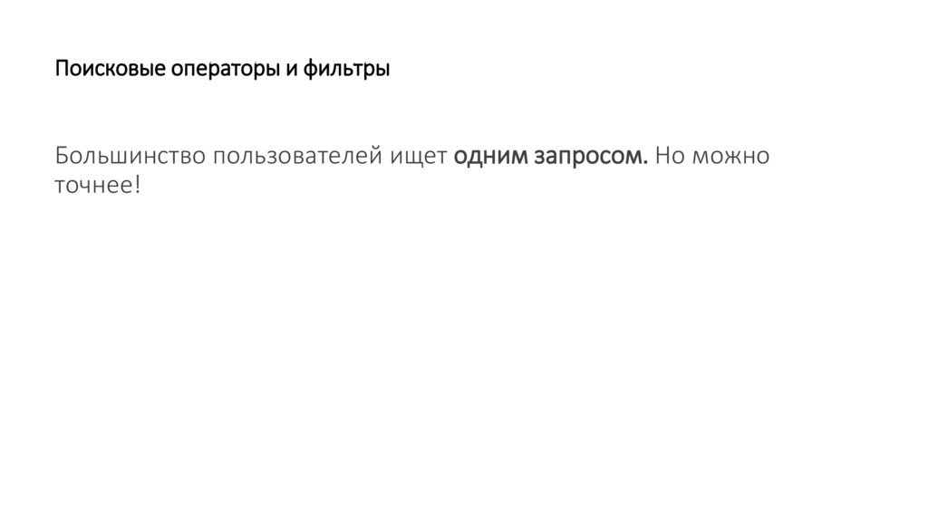 Поисковые операторы и фильтрыБольшинство пользователей ищет одним запросом. Но можно