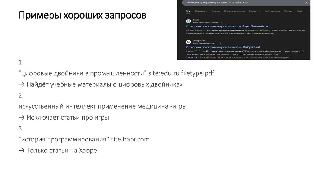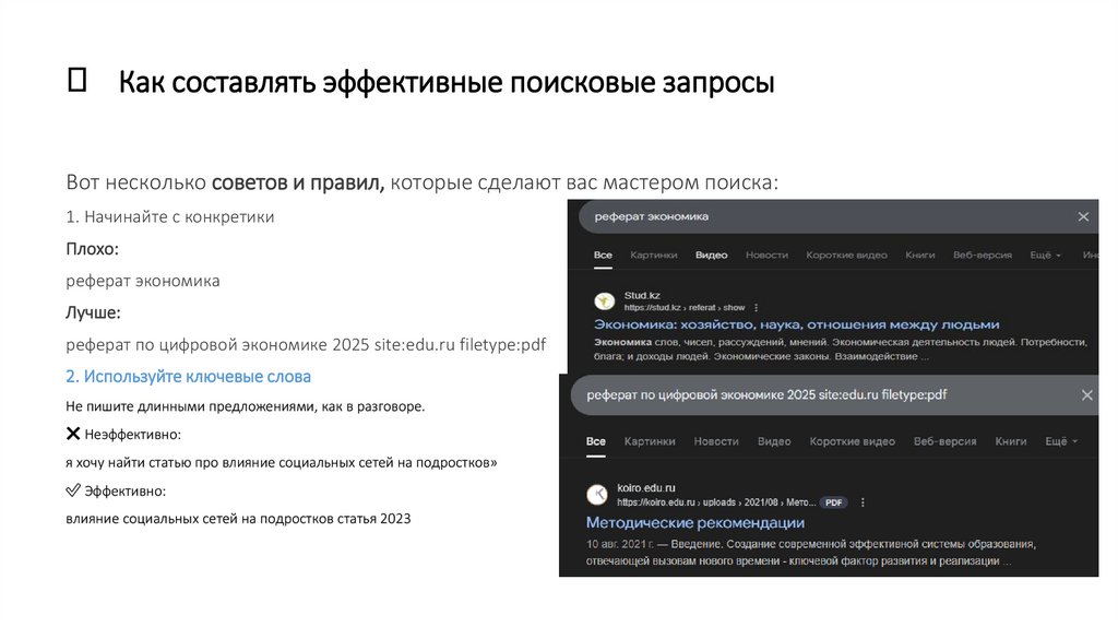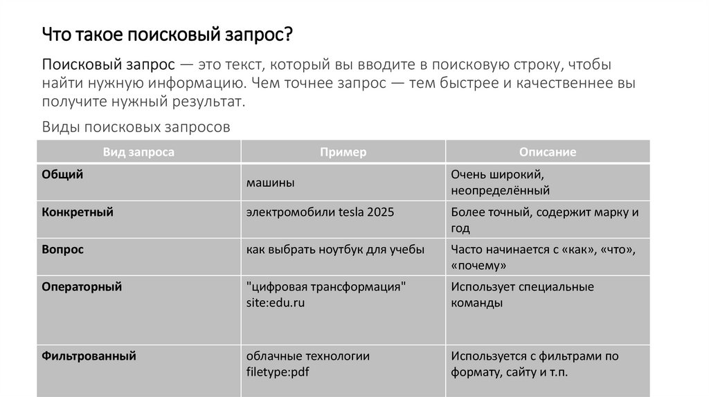 найти нужную информацию. Чем точнее запрос — тем быстрее и качественнее вы