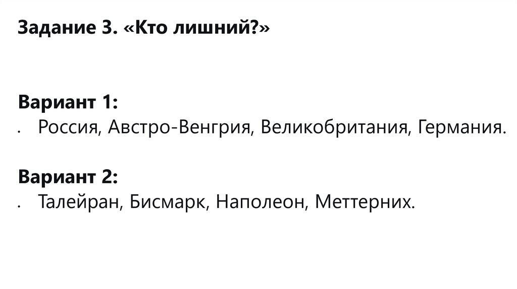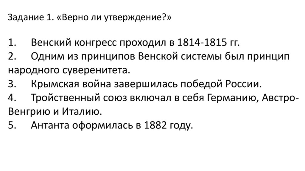 Задание 1. «Верно ли утверждение?»1. Венский конгресс проходил в 1814-1815 гг.