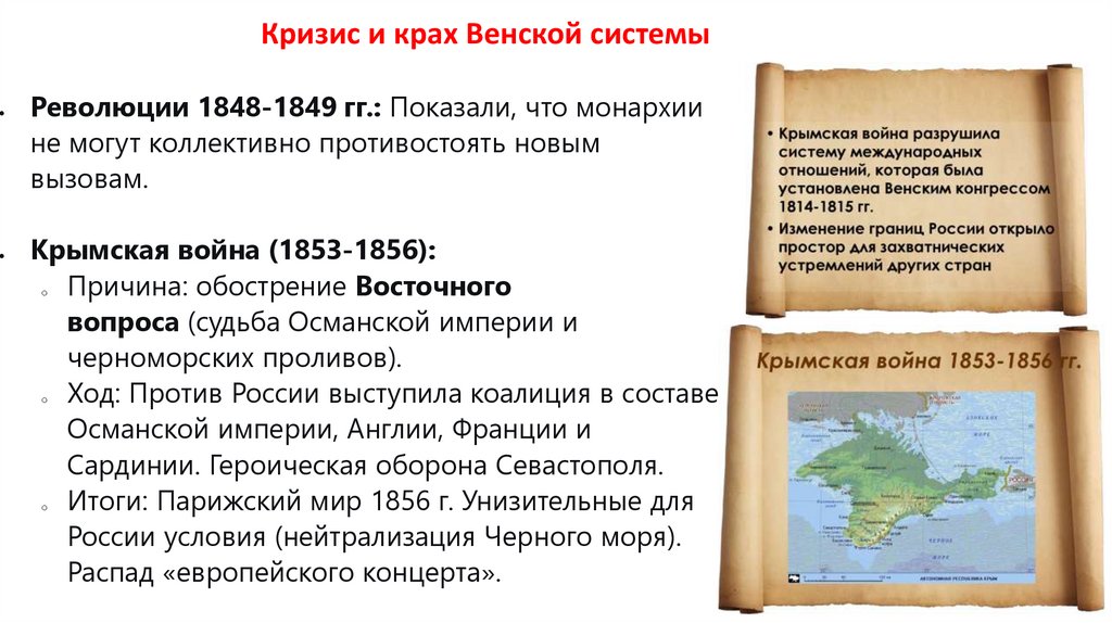 Кризис и крах Венской системыРеволюции 1848-1849 гг.: Показали, что монархии