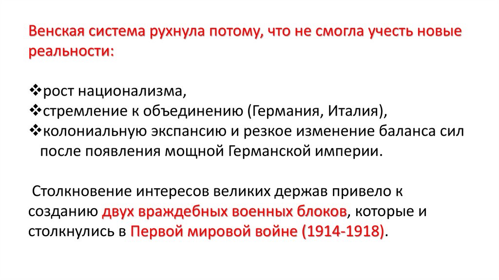 Венская система рухнула потому, что не смогла учесть новыереальности: