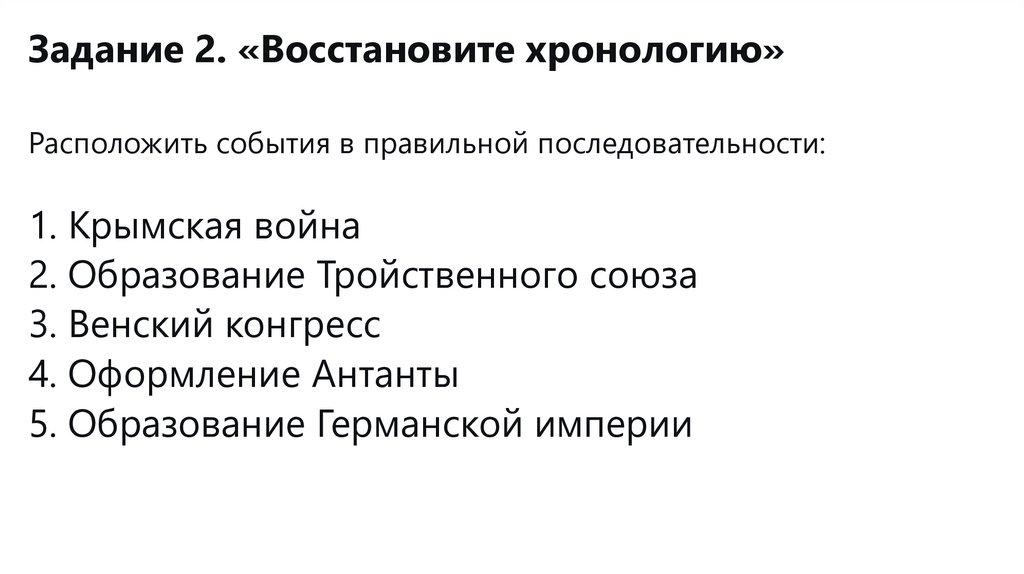 Задание 2. «Восстановите хронологию»Расположить события в правильной последовательности: