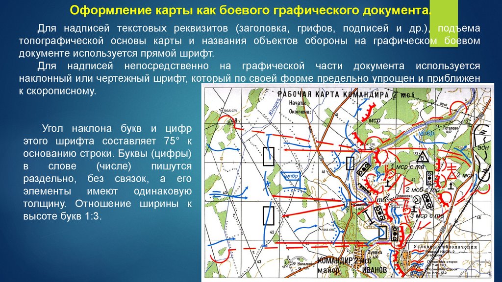 Траншеи, огневые позиции, а также рубежи и задачи наносят на карту с