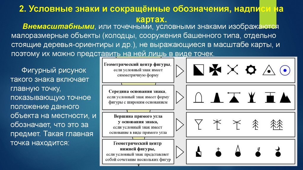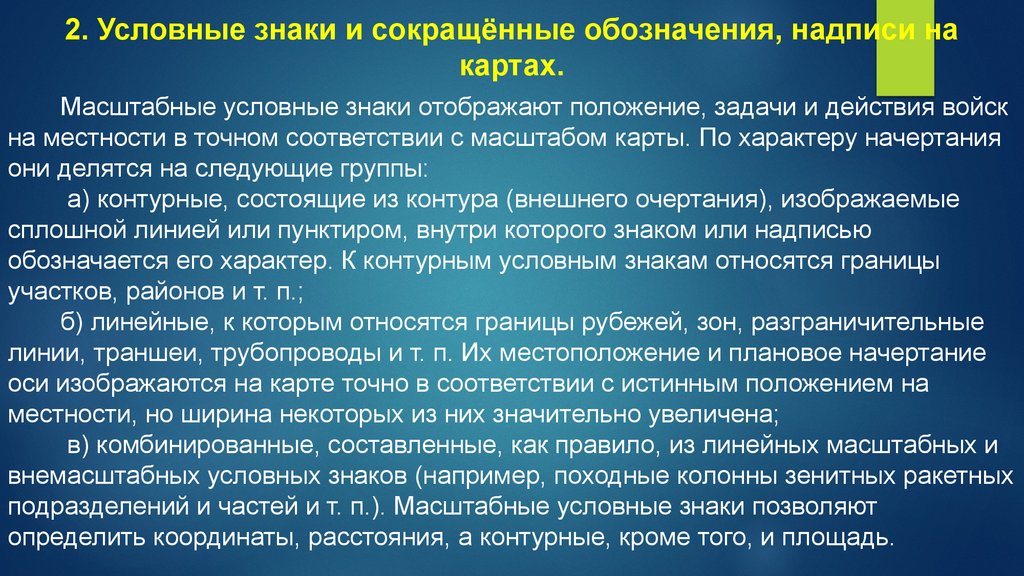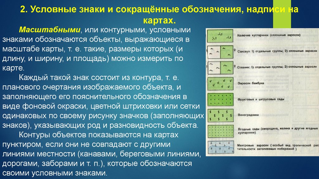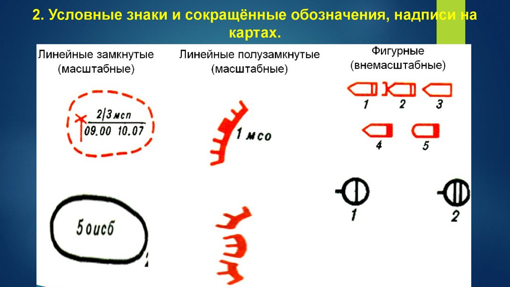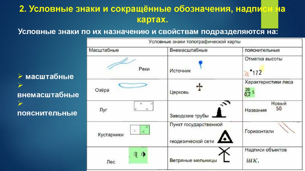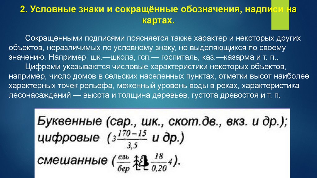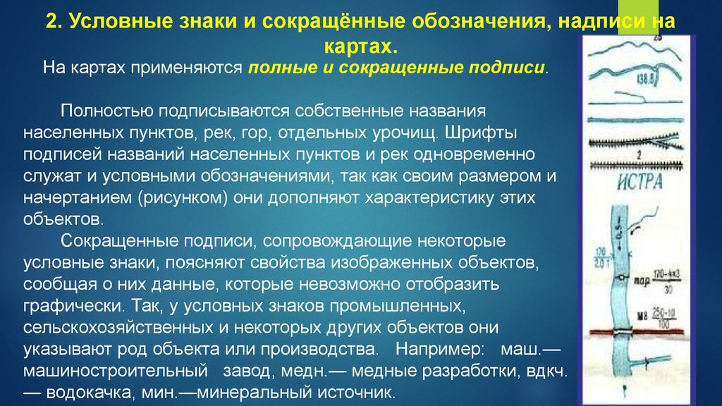 2. Условные знаки и сокращённые обозначения, надписи на картах.