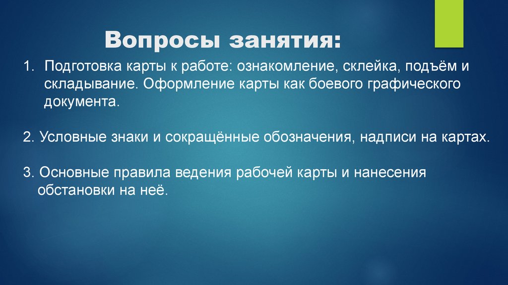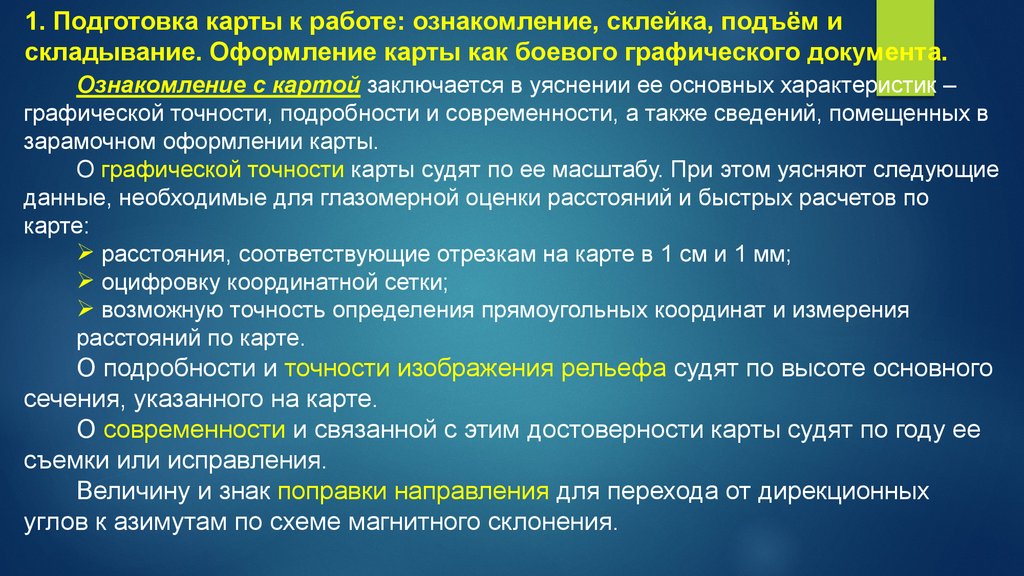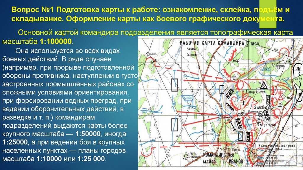 1. Подготовка карты к работе: ознакомление, склейка, подъём искладывание. Оформление карты как боевого графического документа.